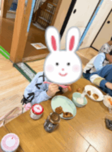 「いただきます!」の声と同時に、あちこちから「おいしい〜!!」の大合唱。自分でにぎったおにぎりは、いつもより何倍もおいしく感じられるようで、あっという間に完食する子が続出。いつもは少食な子が「もう1個食べたい!」と自分からおかわりを求める場面もあり、スタッフ一同思わず笑顔になりました。
